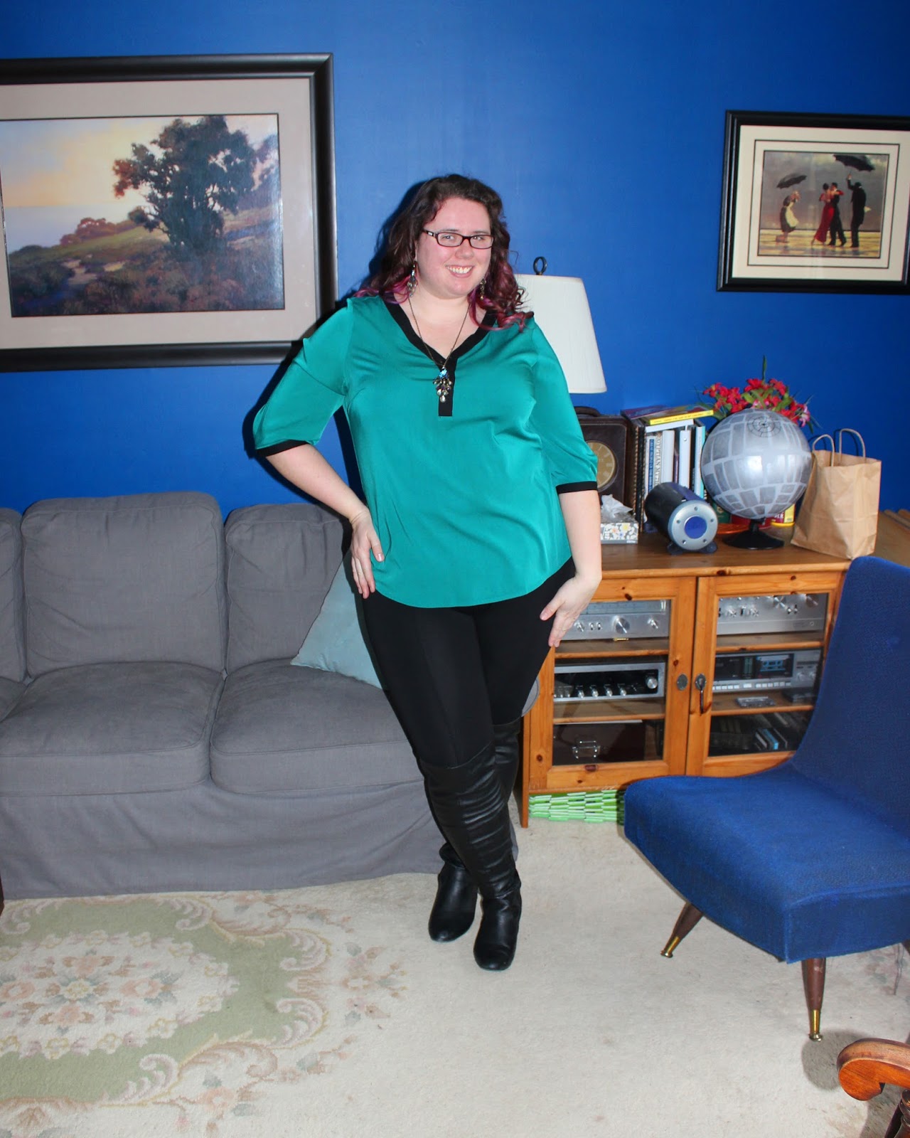 And I know, I've said it in the past - Leggings are not pants. And when I first put this shirt on I wanted to wear it with black dress pants, but they just didn't work out. So I considered my options and ended up putting on my black leggings.
